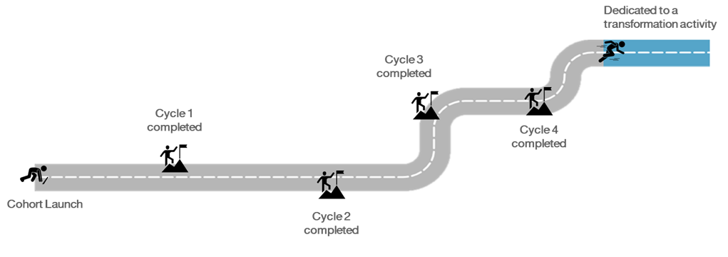 Transformation Ambassadors are at the heart of the transformation journey; therefore, they merit dedicated effort and attention. To sustain this impact, the program follows an annual cohort model, welcoming a new group of ambassadors each year and guiding them through a structured development journey. Upon completing their preparation cycles, ambassadors are assigned to focused transformation activities while a new cohort begins its journey—ensuring continuity and long-term transformation impact across the organization.